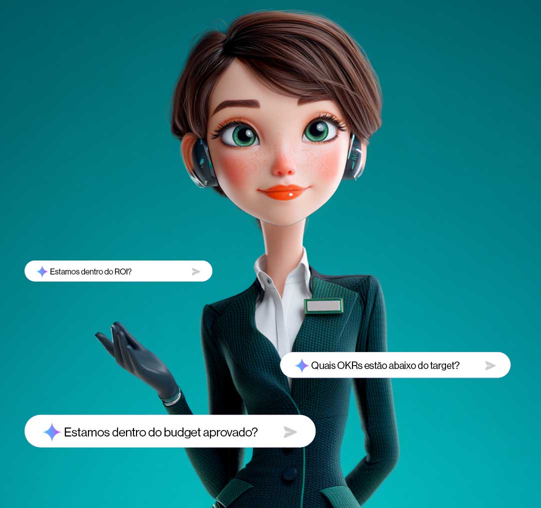 Prioriza investimentos por ROI e impacto, simula cenários de budget e avisa quando uma iniciativa está em risco antes de estourar. O board recebe números, não narrativa.